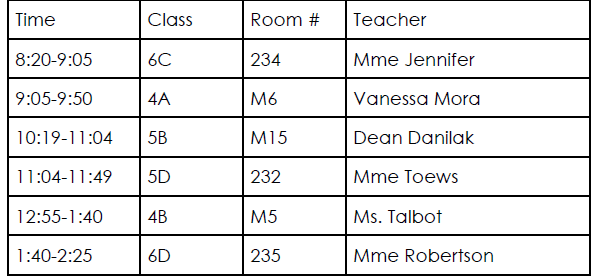 • Grade 6 field trip to Winspear, depart at noon – teachers, please make sure your lunch supervision is covered as needed